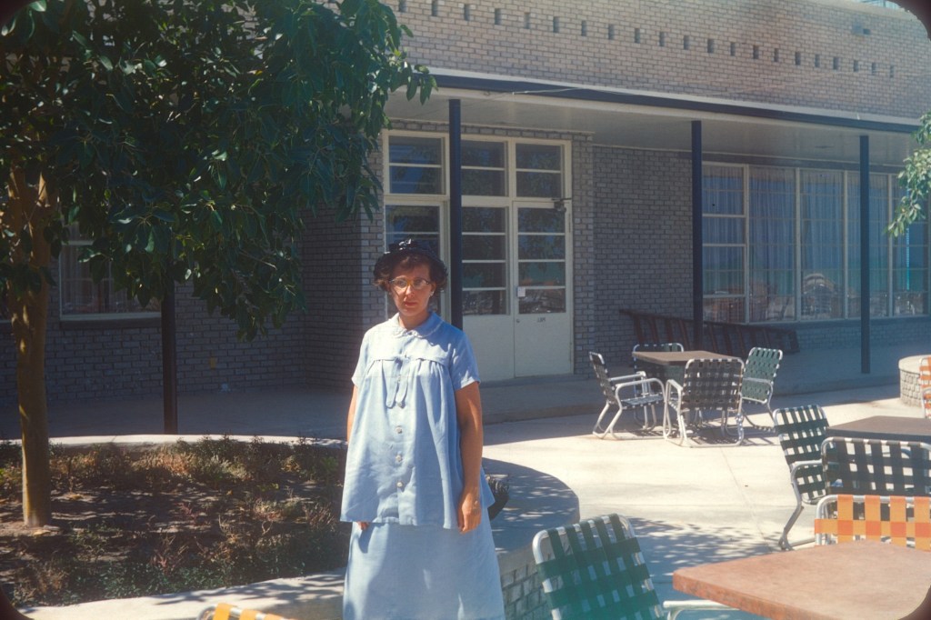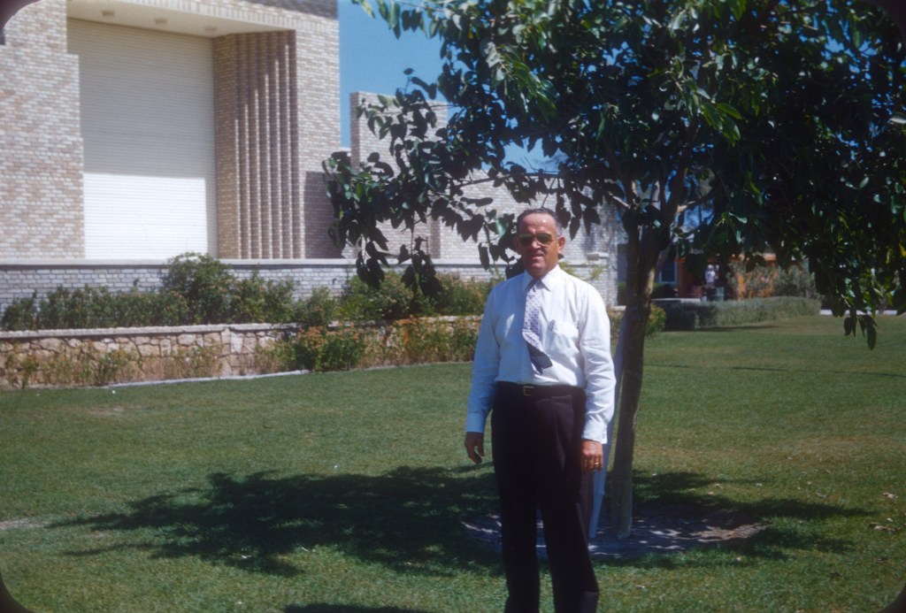 But by 1953, there were already more civilizing elements in the small American society in Saudi Arabia.  My mother met my father, singing alto next to his tenor in the small choir of the Ras Tanura Protestant Fellowship.  Time wasn’t of the essence in their courting until my father found out that my mother’s two-year contract was almost through and she wasn’t “re-upping.”  His hasty proposal gave her a reason to stay with him and the advent of married housing gave them both the option of staying in Saudi Arabia following their stateside wedding in October 1956.