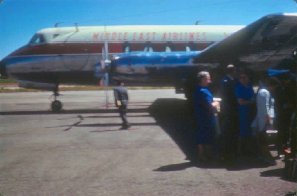 Life was always just the other side of normal, though.  It wasn’t until the following March that my mother was able to return to the Kingdom.  Before she left the States, an Aramco friend approached her for a favor: since she was traveling through Amsterdam on her way East, could she pick up the baby they had just adopted?  Here’s my mother, a bride of only five months, walking down the aircraft stairs with a baby in her arms — how people must have talked!  But life with Aramco was like that.  As a foreign place became your place, necessity mothered many schemes.